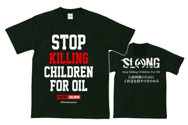 IGNORANCE x SLANG WネームT-SHIRT 【STOP KILLING CHILDREN FOR OIL】